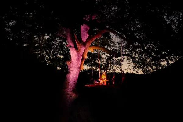 Chaque rencontre débute en fin d’après‑midi par une visite de la ferme pour les premiers inscrits, suivie d’une dégustation de produits locaux (fromages de chèvre, pain paysan) et d’un repas paysan préparé sur place. La soirée se poursuit avec un concert en arbozanteur, une scène musicale originale perchée dans un chêne majestueux, incarnant à la fois créativité et immersion en pleine nature.Un lieu et un état d’esprit